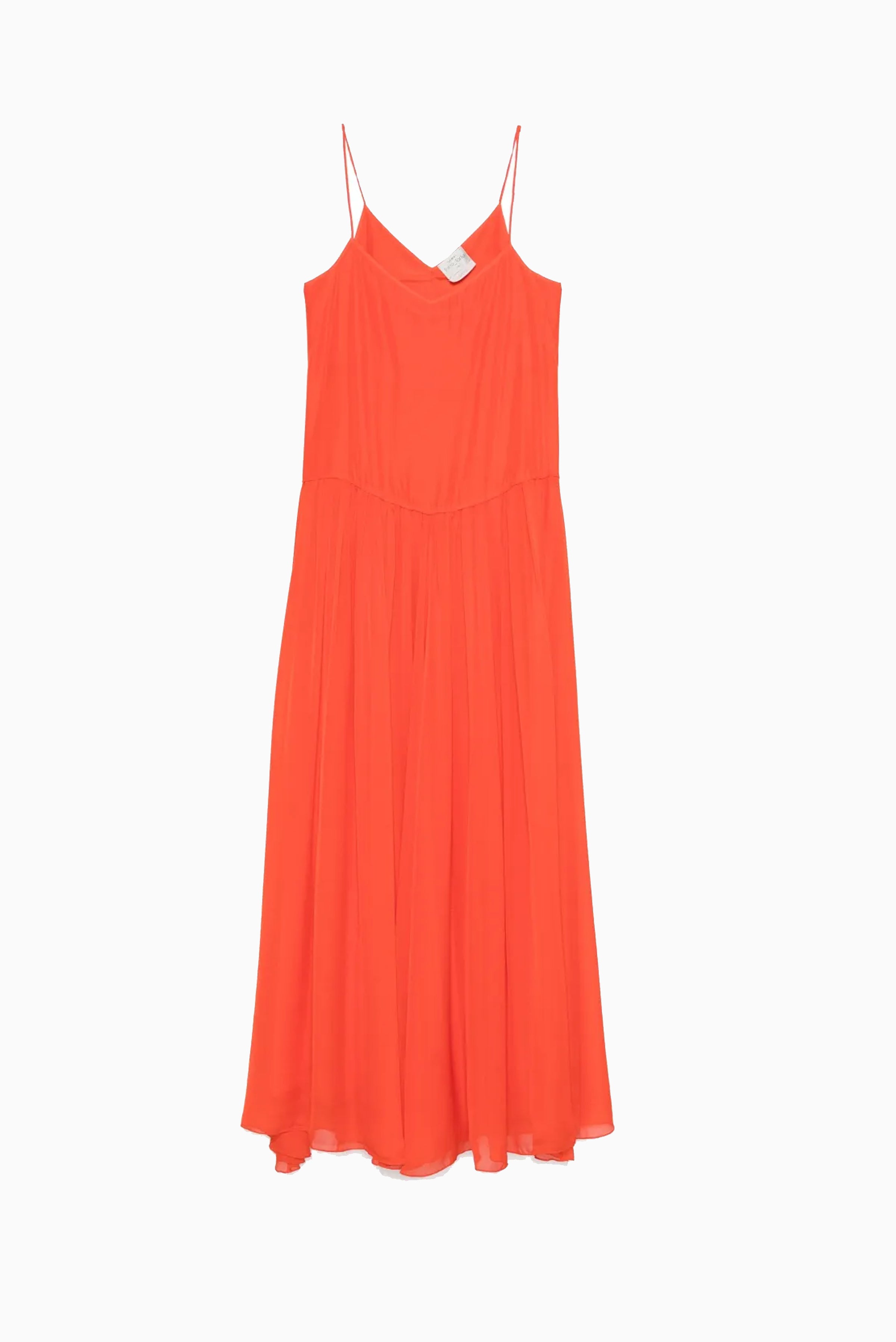 - Crafted from luxurious habotai silk, this FORTE FORTE dress features a striking lava orange hue with strategic partial lining for refined comfort. The elegant V-neckline and delicate spaghetti straps create a sophisticated silhouette that transitions effortlessly from day to evening wear.