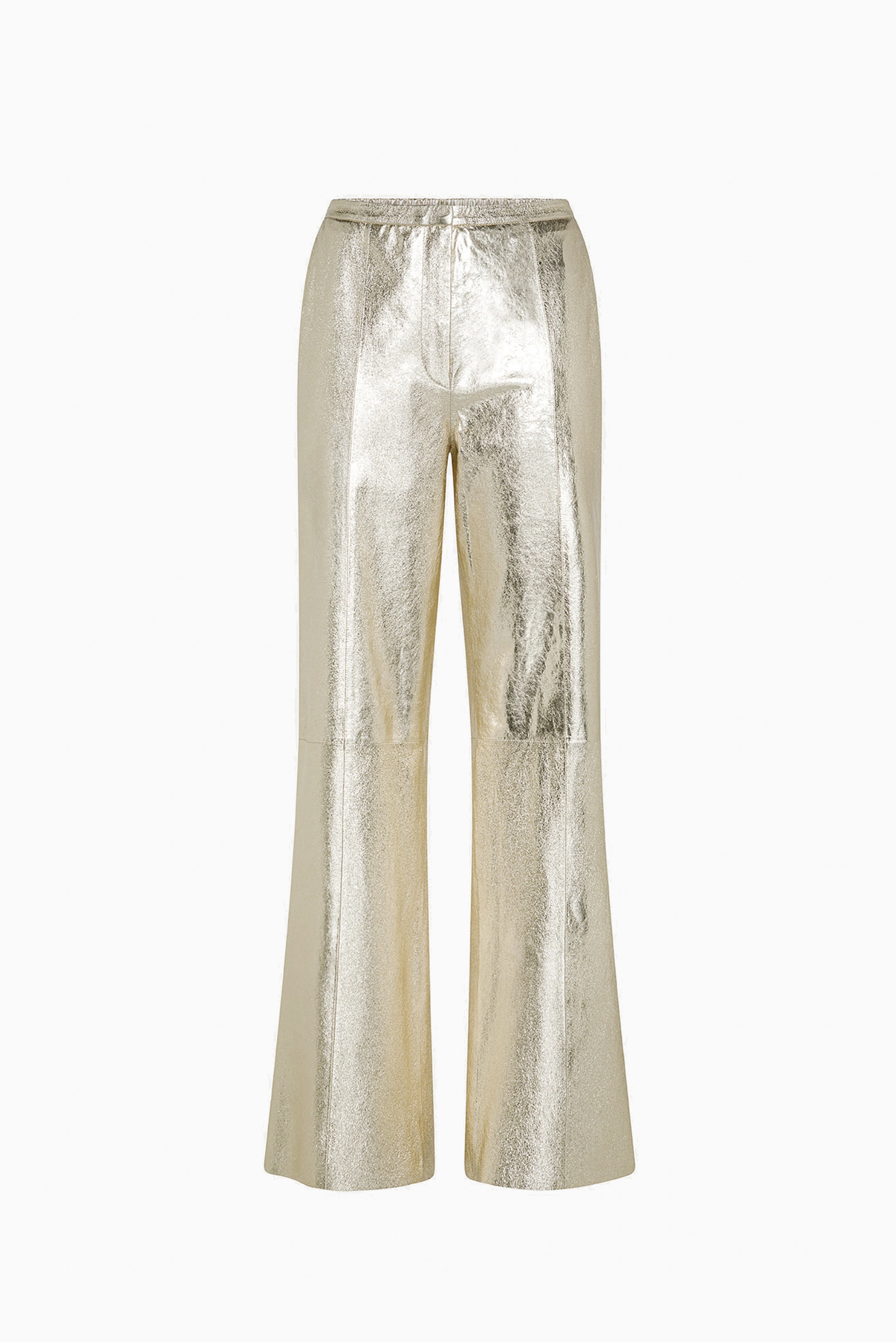 Forte Forte palazzo pants with curated detailing have been cut from gleaming–gold lamé leather