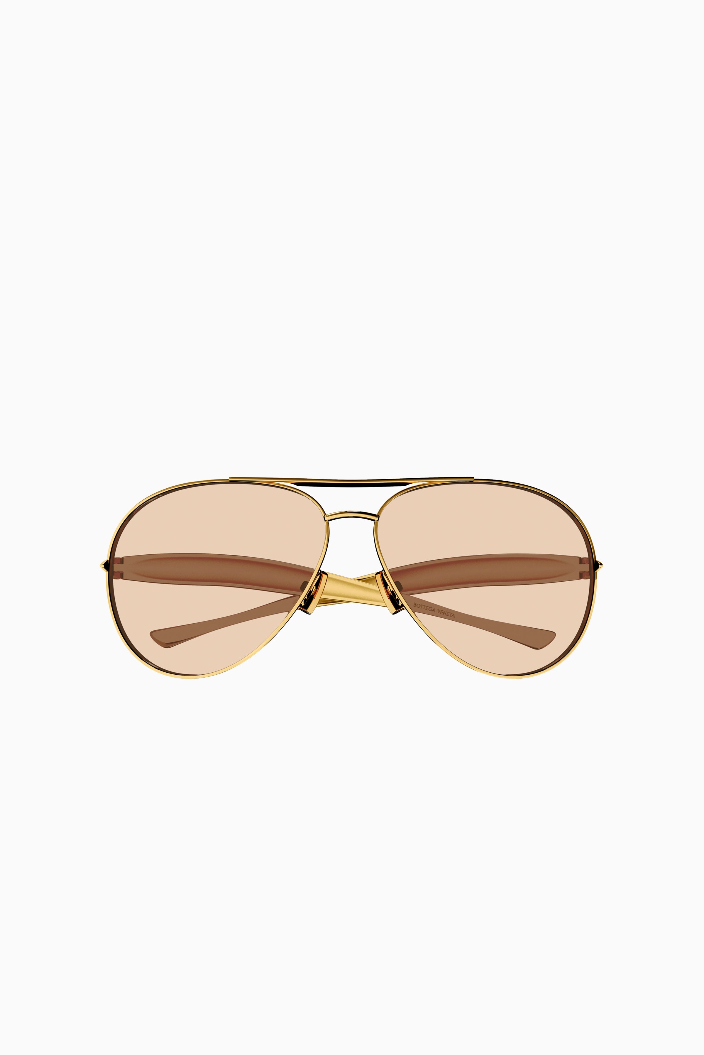 Full metal pilot style Iconic sardine temple featuring very voluminous geometry and hollowed out from the inside to reduce its weight Top bar with Bottega Veneta Logo in the top view