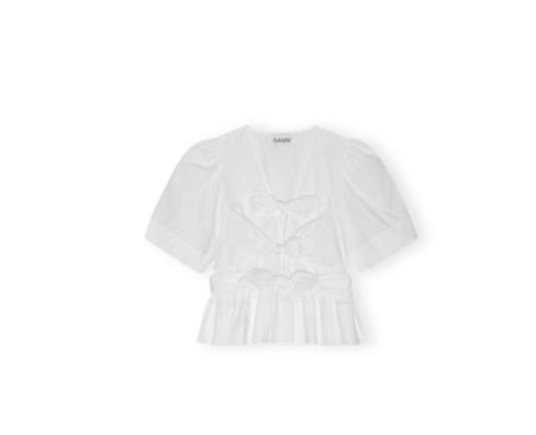 GANNI Washed Stretch Cotton Tie Strap Blouse - White