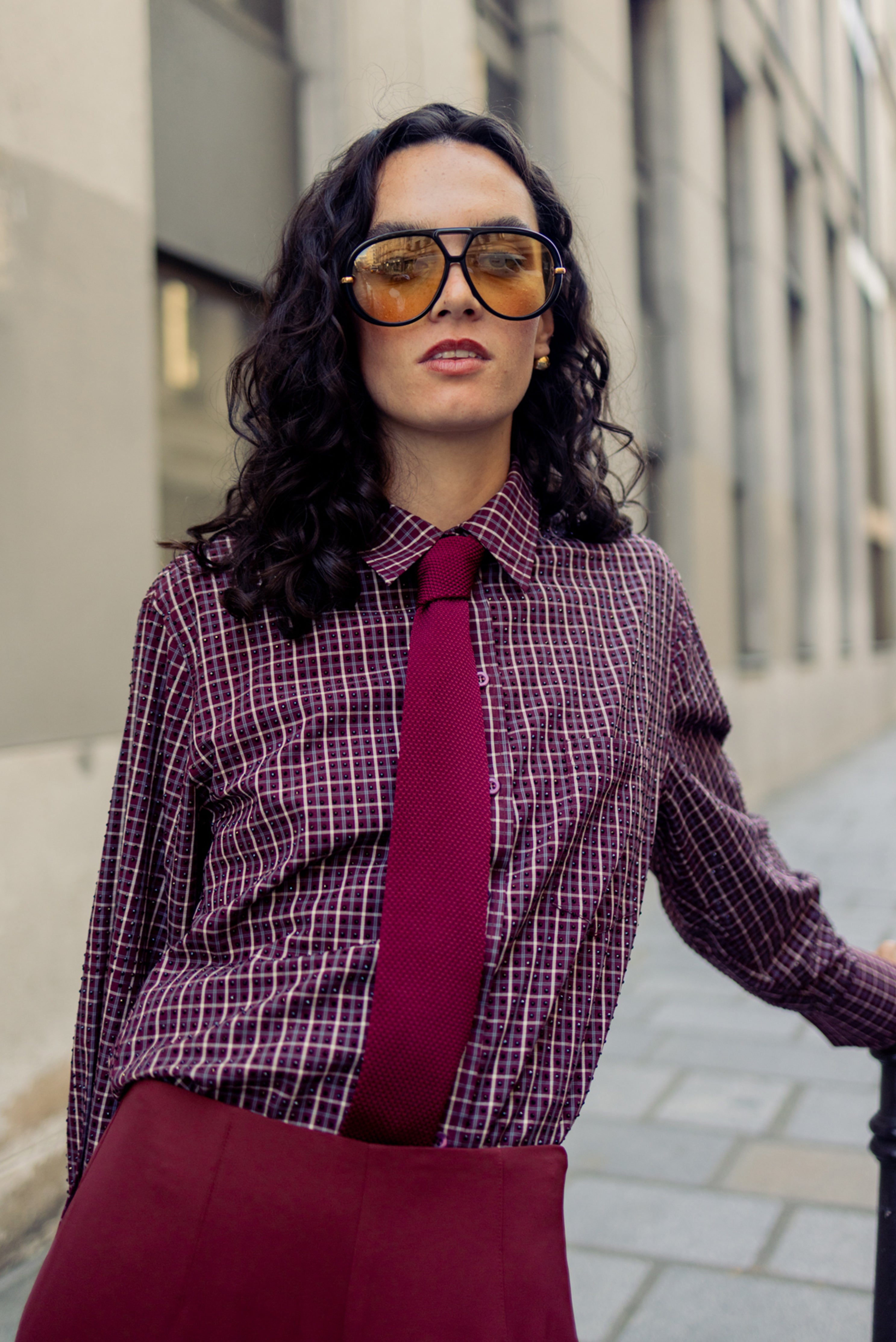 An elevated take on a classic, this is a fresh update to our Finlay Shirt. It features a refined burgundy check pattern adorned with subtle rhinestone details, bringing a modern edge to timeless tailoring. Designed with crisp, soft shirting and double cuffs finished with fine cufflink detailing, it blends sophistication with statement.