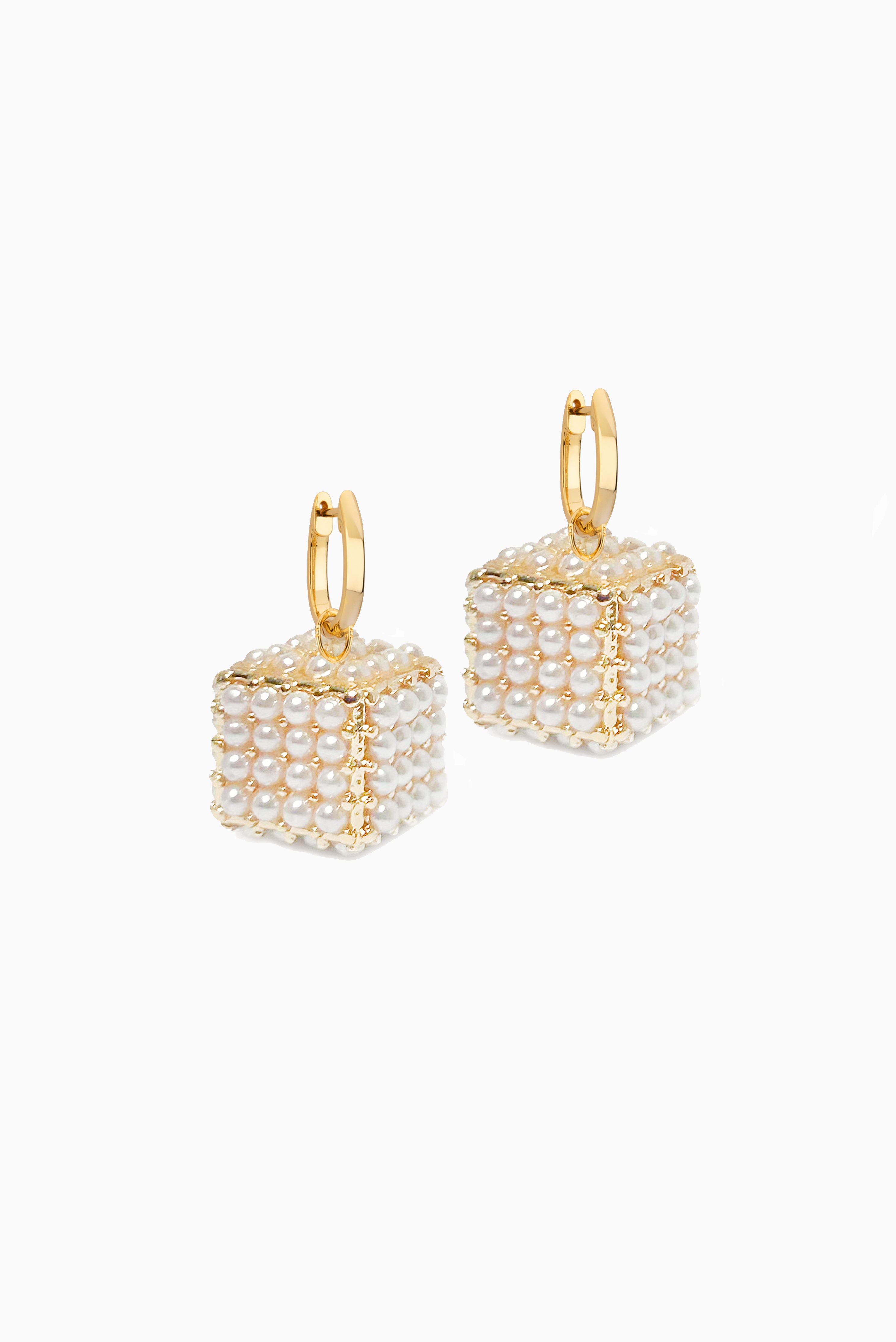 Delicate pearl-adorned dice dangle from petite gold hoops, creating an understated yet sophisticated accessory. Each die features lustrous pearls set into its faces, offering a refined take on playful geometric design. Perfect for those who appreciate jewellery that balances whimsy with elegance.