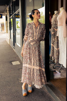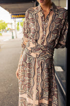 Effortlessly refined, the O.P Delphine Dress blends vintage-inspired charm with modern ease. Crafted in a fluid, lightweight fabric, its soft blush base is layered with an intricate paisley print that moves beautifully with every step. The button-through front and tailored collar add a touch of structure, while the softly cinched waist creates a flattering, feminine silhouette.