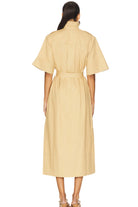 Classic Summer Suiting Cowl Neck Long Dress - Pale Khaki