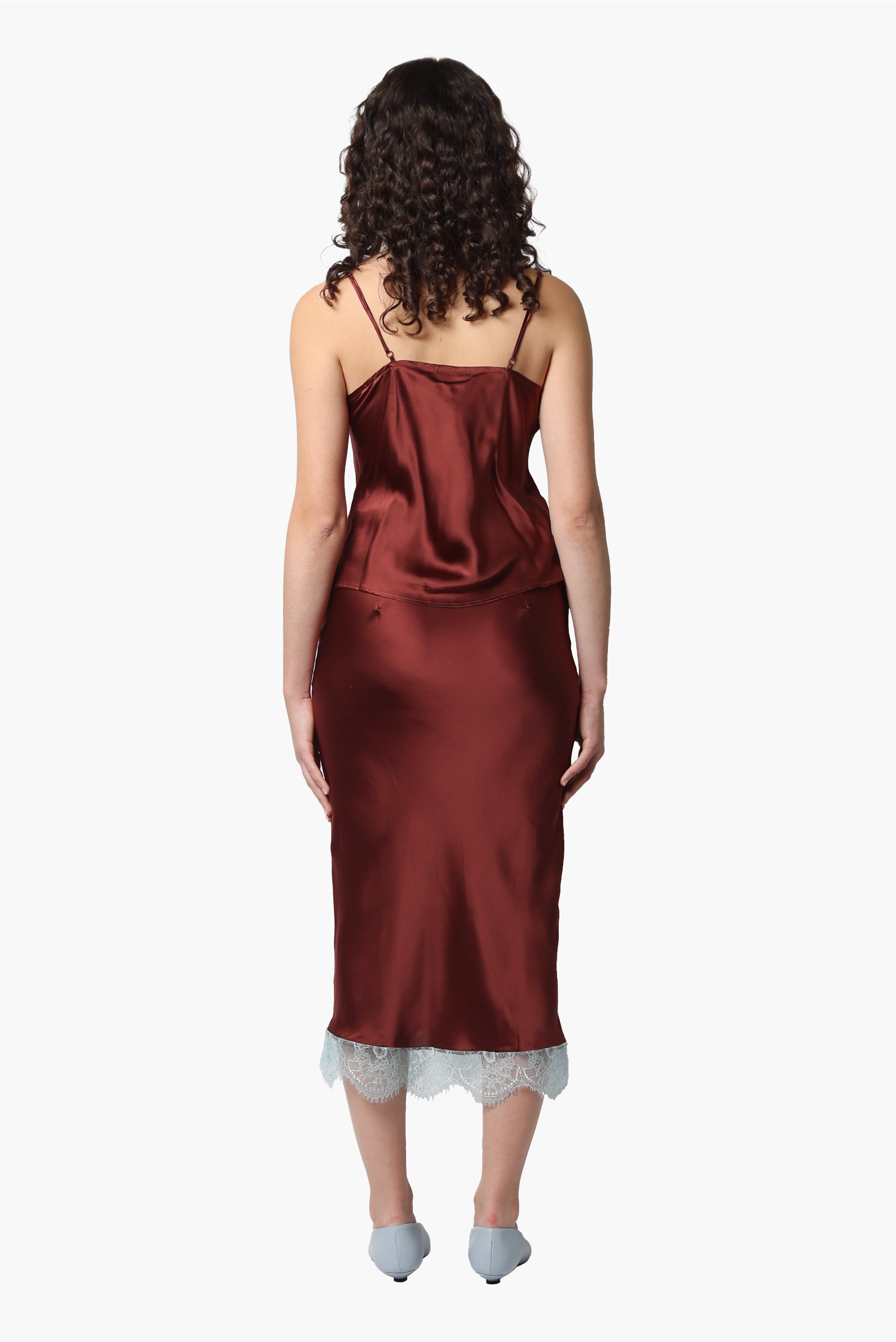 Lipp Silk Skirt - Burgundy/Soft Blue