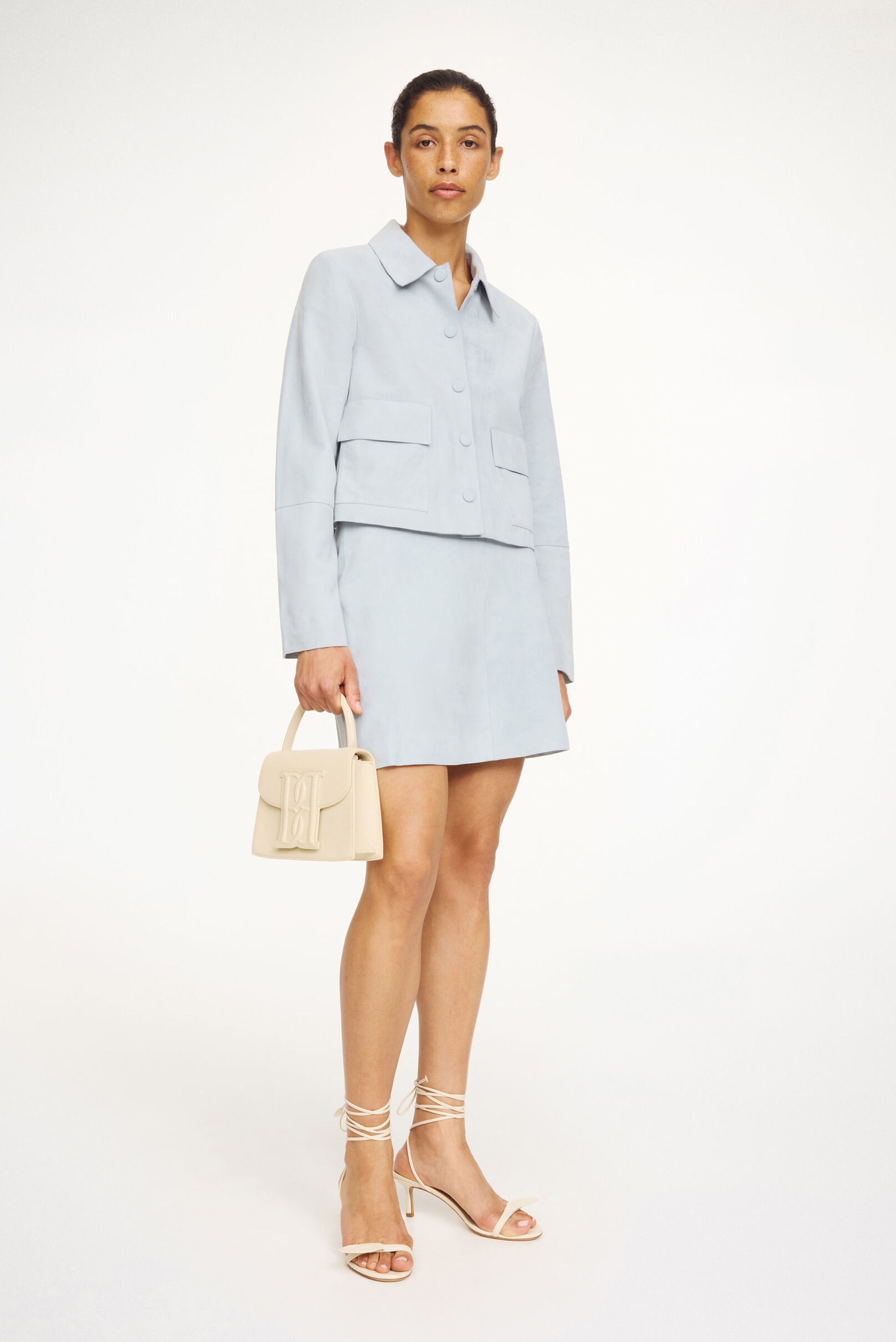 Soft-textured and luxurious, the Annie jacket is sure to be a favourite for years to come – and will only get better with time, thanks to its velvety suede. The form-fitted and slightly cropped silhouette features a button closure, front flap pockets and a sharp collar. Layer over office and weekend attires as the weather transitions.