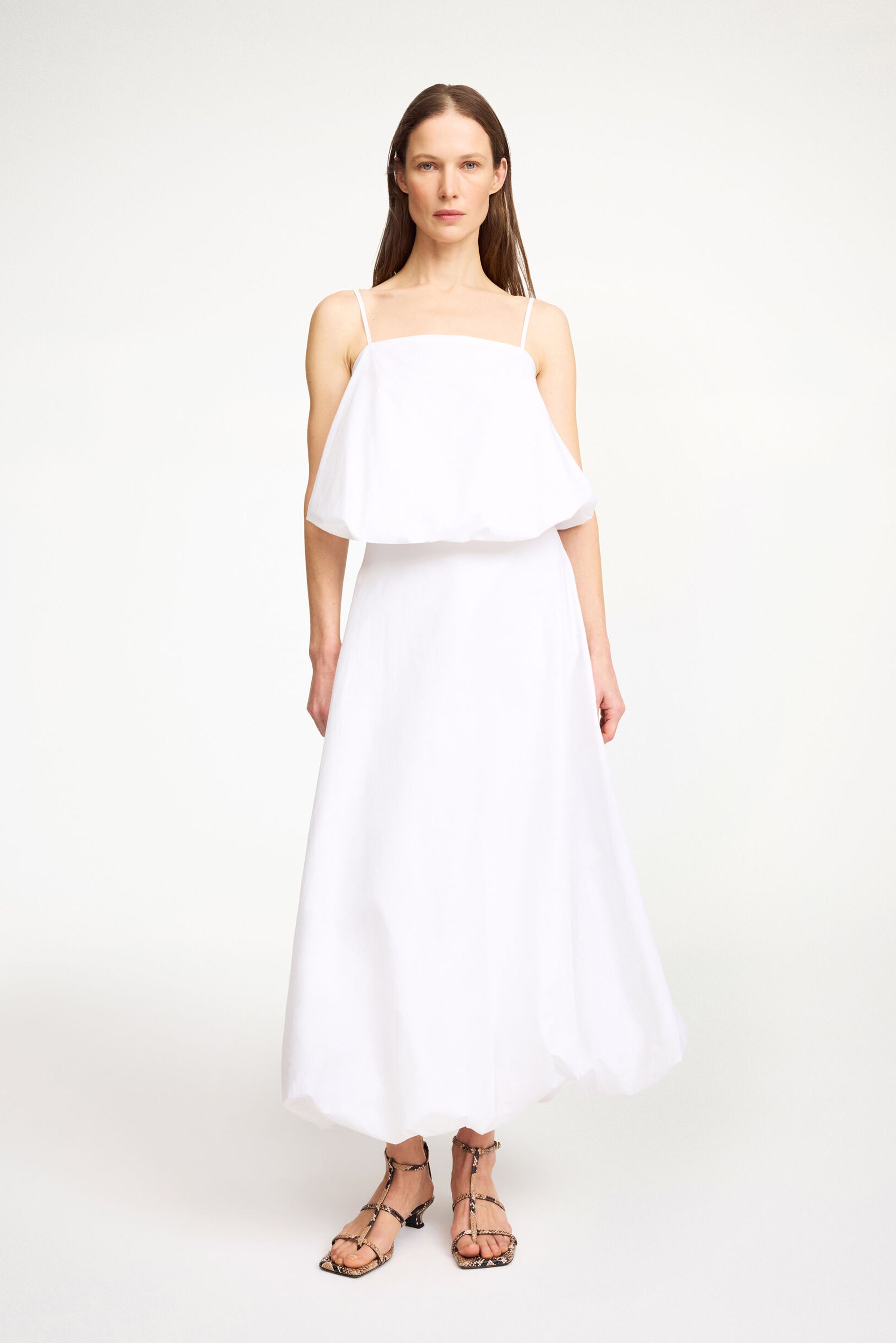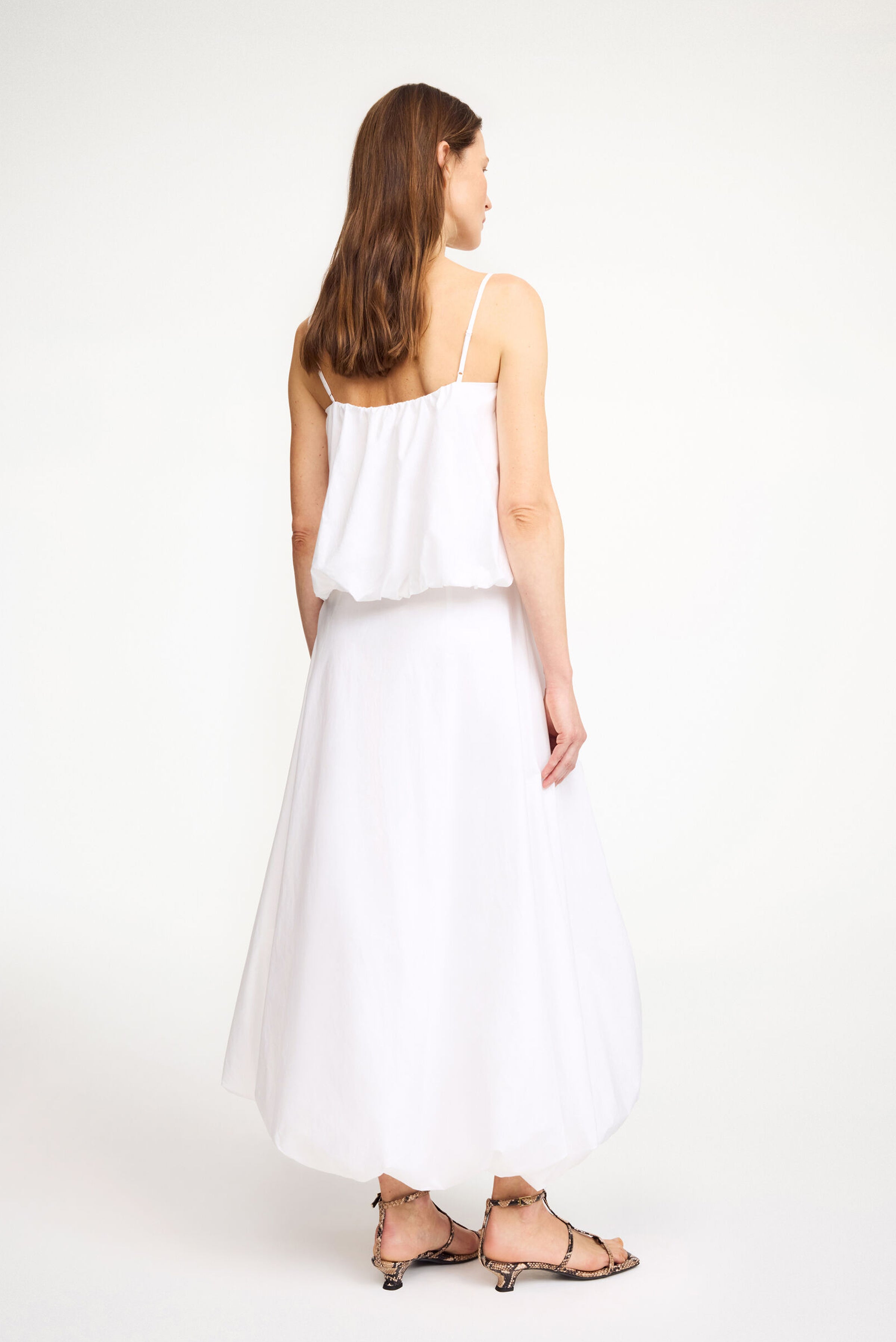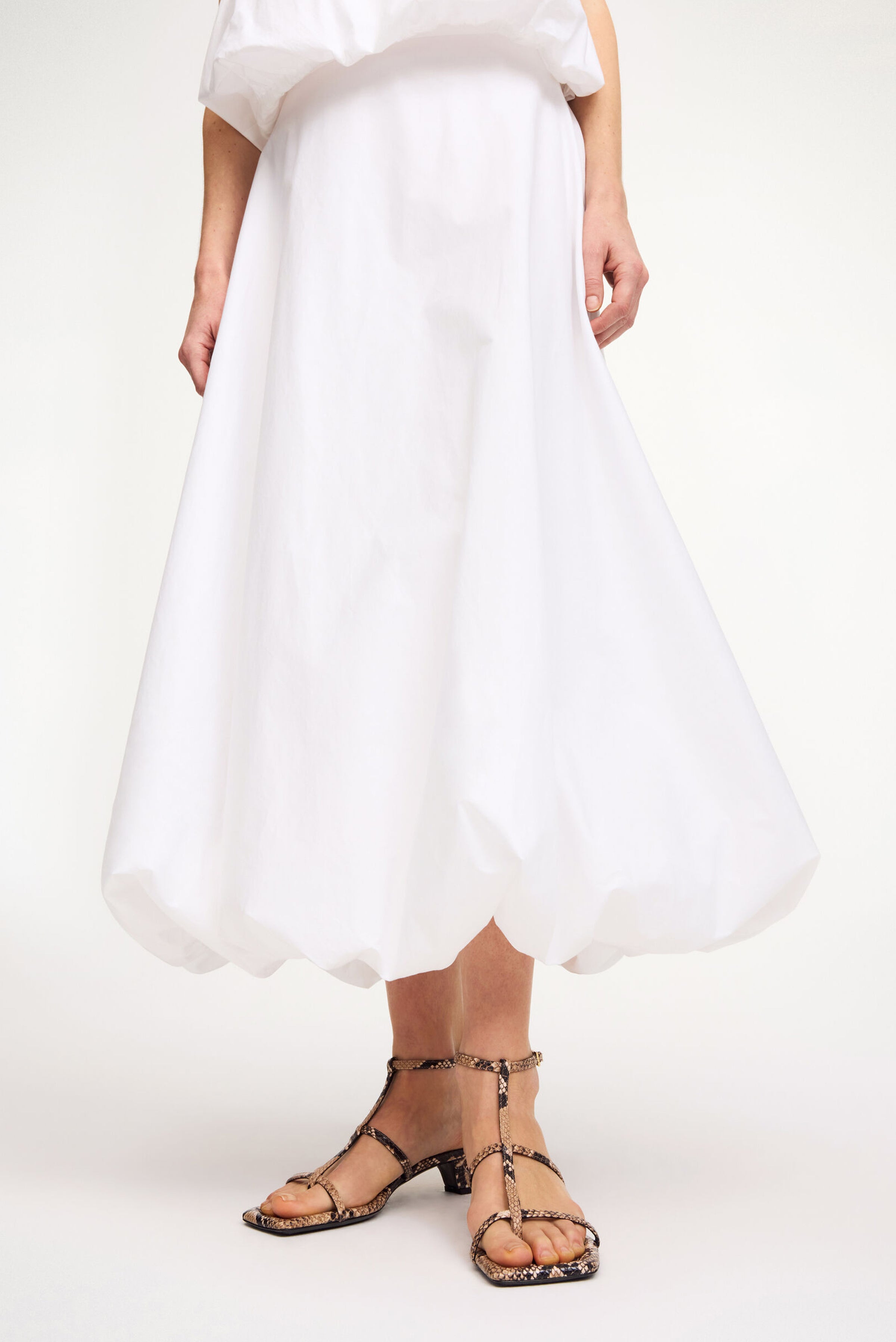 It might look simple at a glance, but the Aubrey skirt stands out with its bubble bottom. Made in organic cotton, the airy design sits high on the waist, closes with a zipper and cuts just above the ankle. Wear with its matching Mia top and the Sallon belt on sunny days.