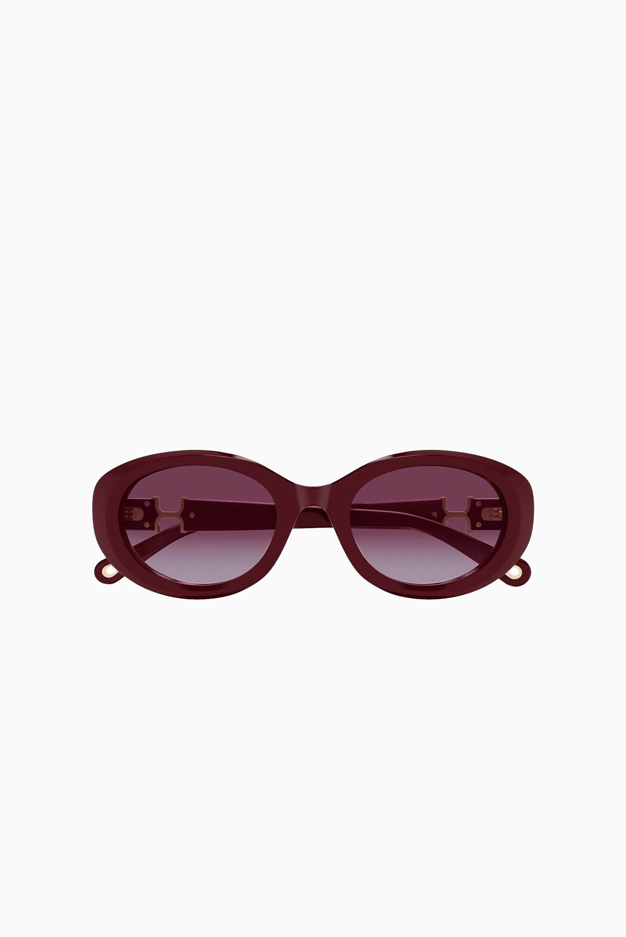 The Chloé CH0323SK sunglasses bring effortless style with a pop of bold colour. Featuring a sleek oval silhouette, this rich red acetate frame is polished yet playful, while the iconic Marcie gold logo on the temples adds that signature touch of luxury. Finished with matching red gradient lenses, the CH0323SK offers essential UV protection and a modern, tonal look that works perfectly for everyday wear.