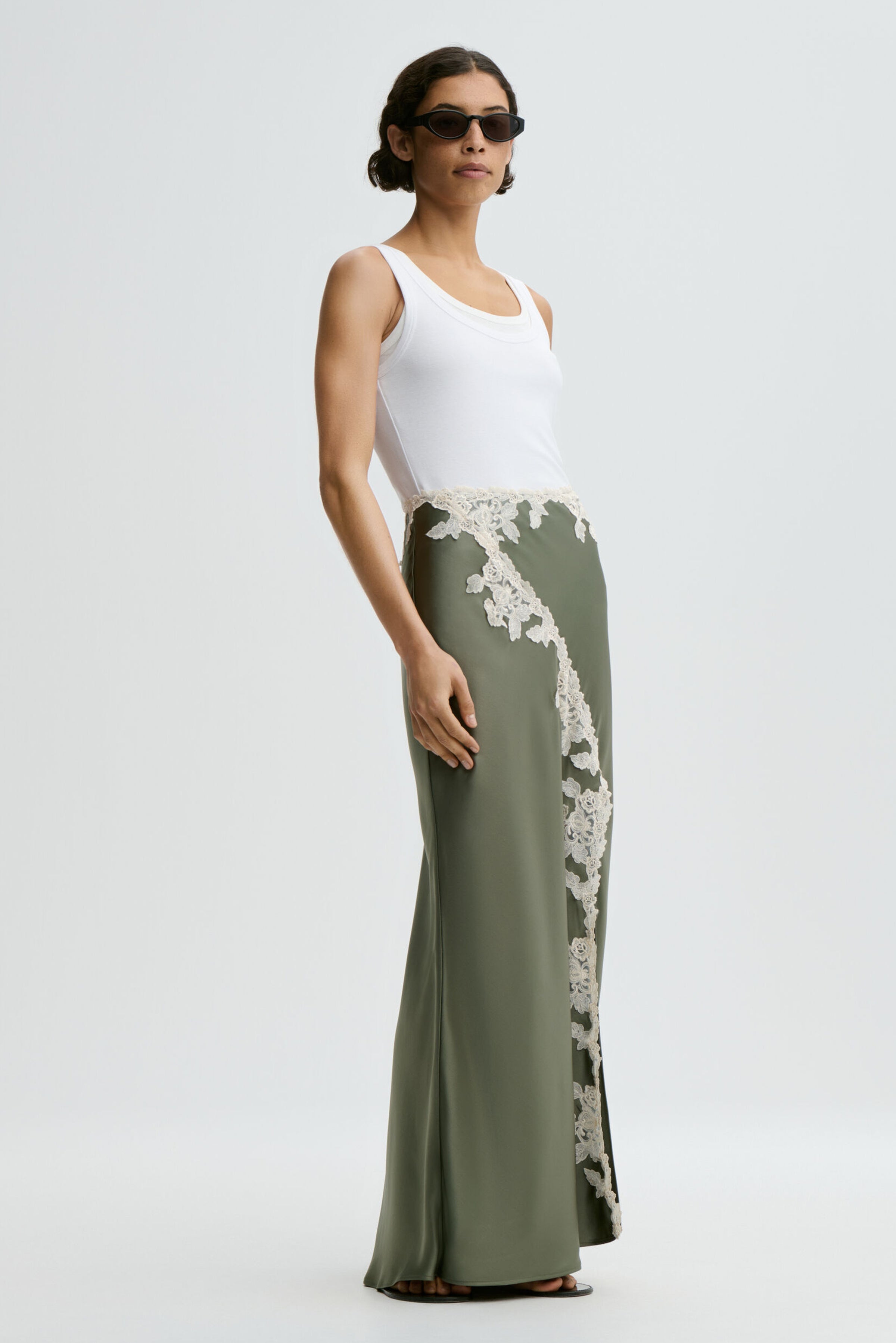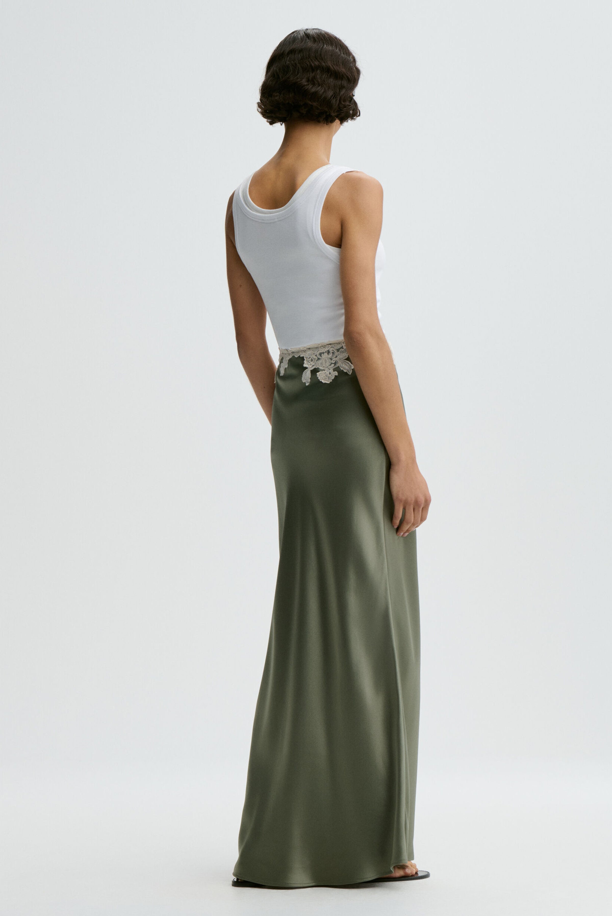 Add a romantic appeal to your spring and summer wardrobe, courtesy of the Erika maxi skirt – which stands out with its luxe satin and vintage-inspired lace trims. Dress down for everyday with a minimalistic T-shirt or wear with the matching Madeleine top for the season’s soirees.