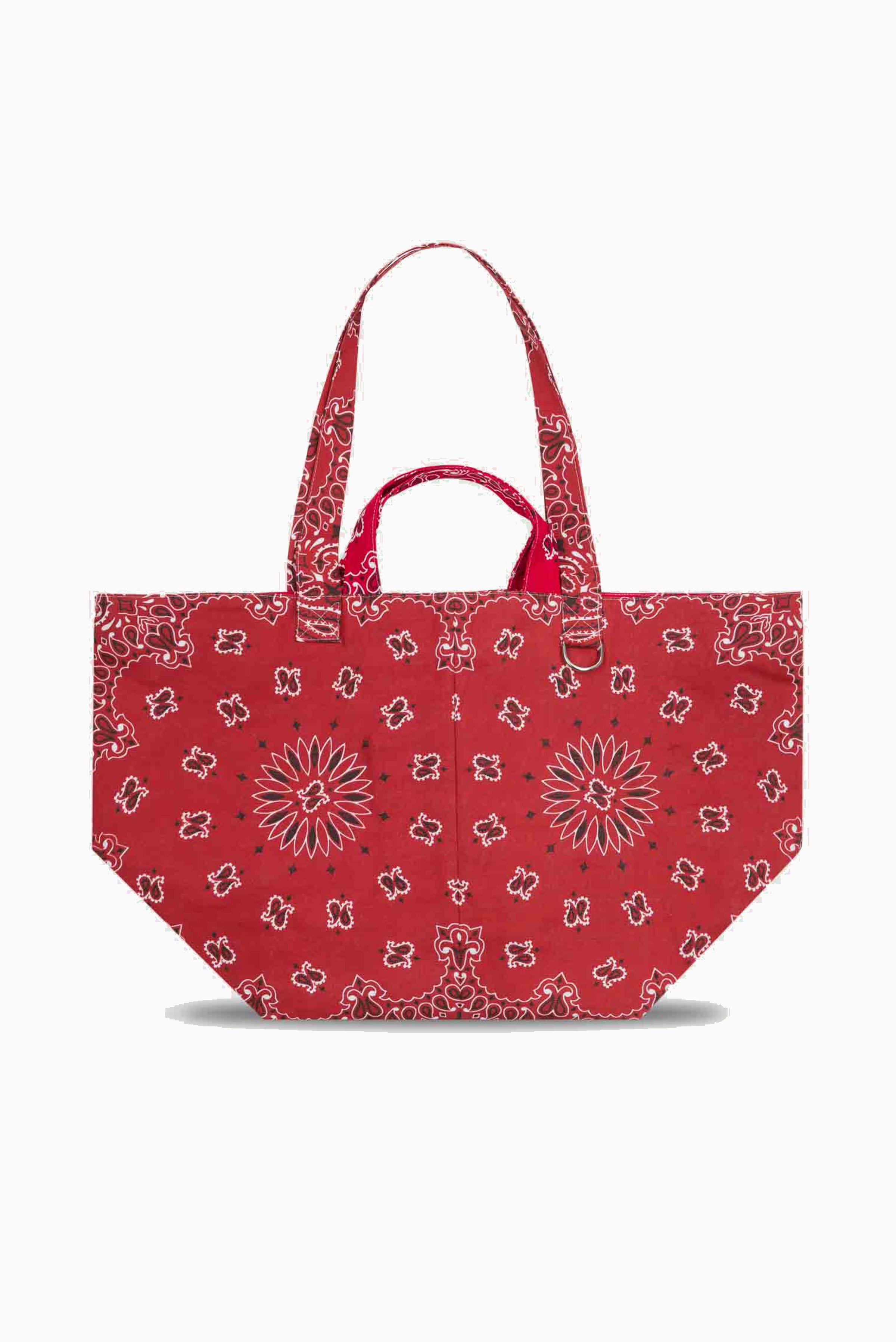 Length of handles: 23cm for the small handle and 59cm for the large handle. Dimensions: W 72 x H 42 x D 36 cm / W 28,3 x H 16,5 x D 14,17 inches Two rings for hanging a shoulder strap or gray-gray bags Large zipper Large inside pocket Also available in mini and medium sizes Composition: 100% cotton Bandanas made in the USA Made in Poland Our bandanas are handcrafted. Dye baths may vary slightly from one production to another.