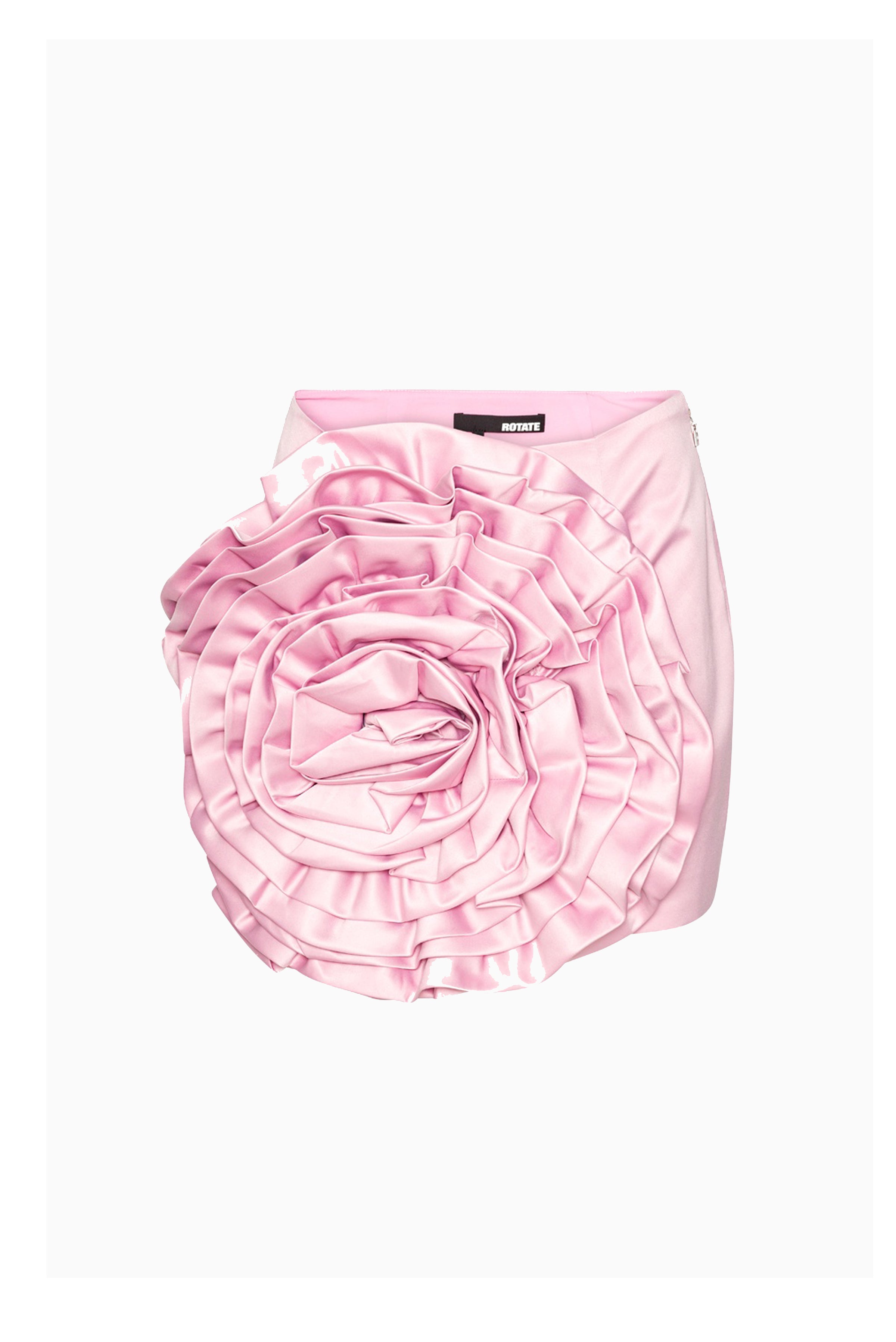 Delicate mini skirt featuring an interactive 3D floral embellishment that captures light and movement with every step. The satin construction delivers a refined finish, while the dimensional flower detail adds sophisticated visual interest to your wardrobe.