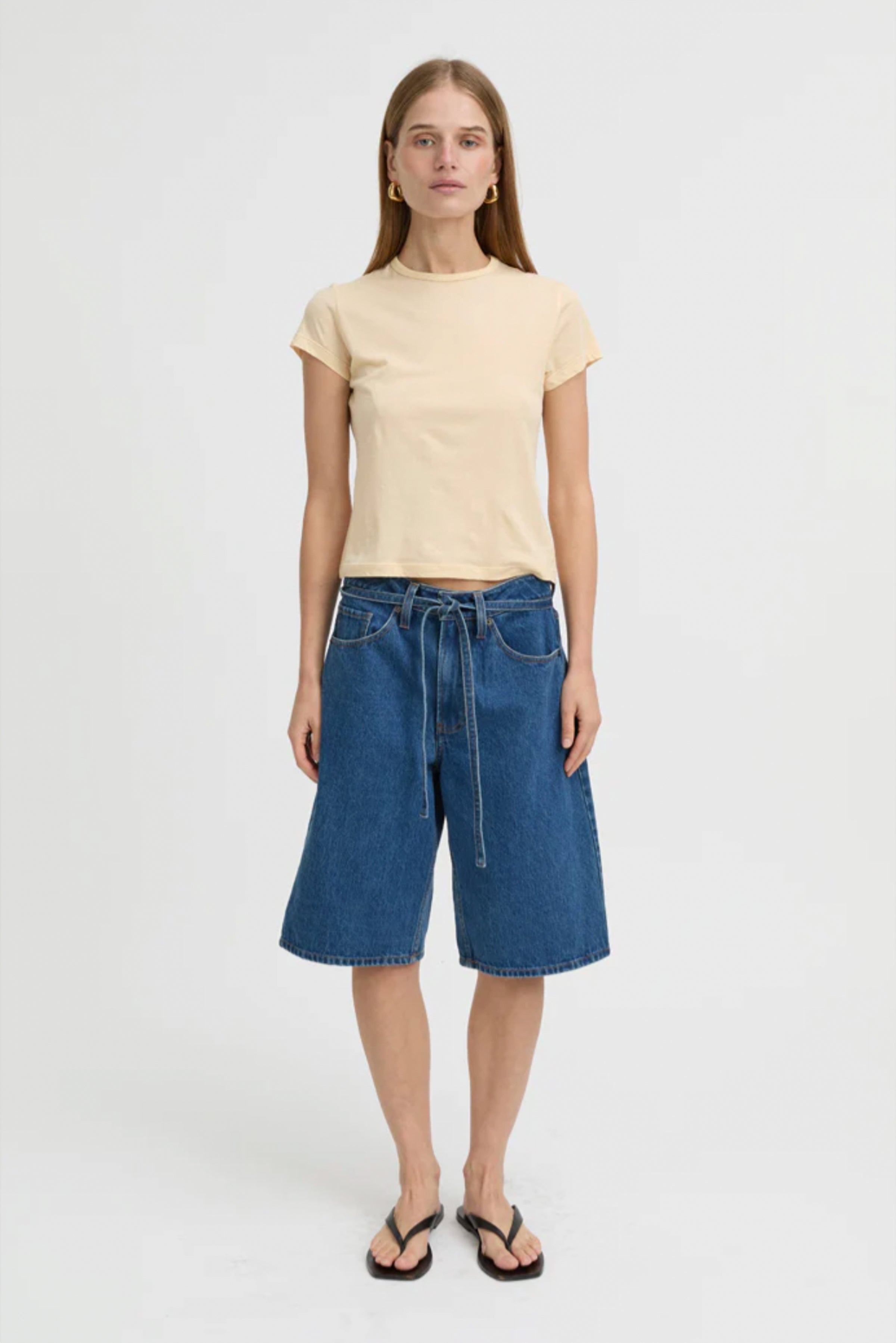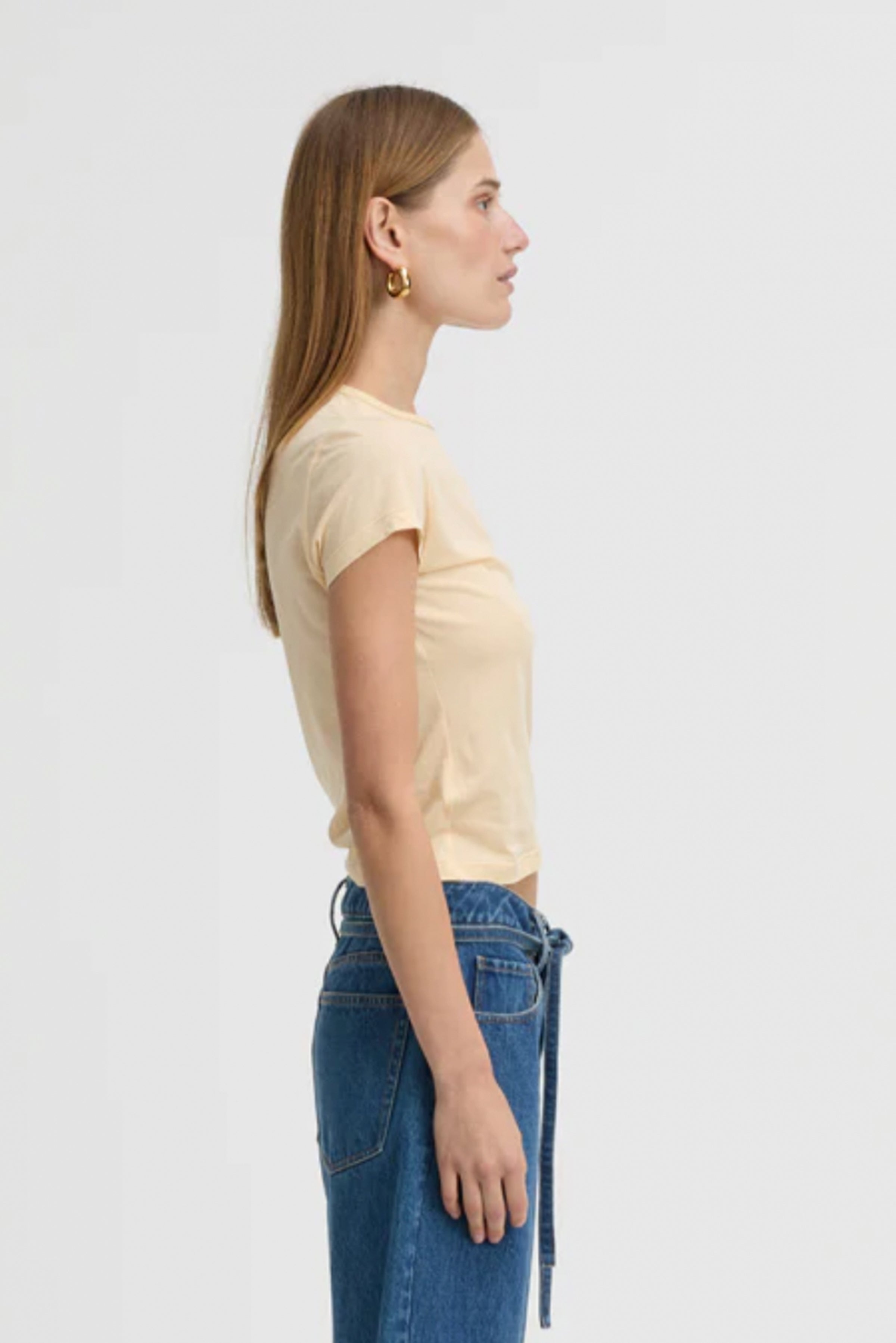 Soft cotton blend tee with a flattering cropped fit and crew neckline. The fitted silhouette with gentle stretch moves with you, while clean lines keep the look effortlessly versatile. Style it casual with denim or dress it up tucked into tailored pieces—a wardrobe essential that works everywhere.