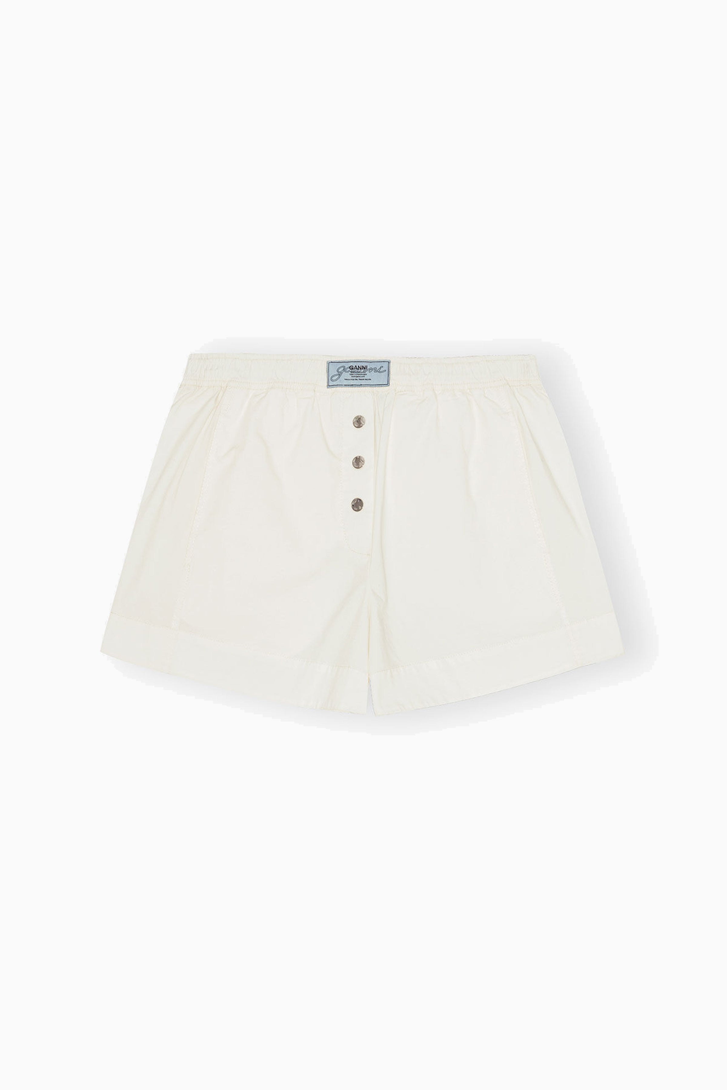 These shorts feature an elasticated waistband for an adjustable fit and a buttoned front.